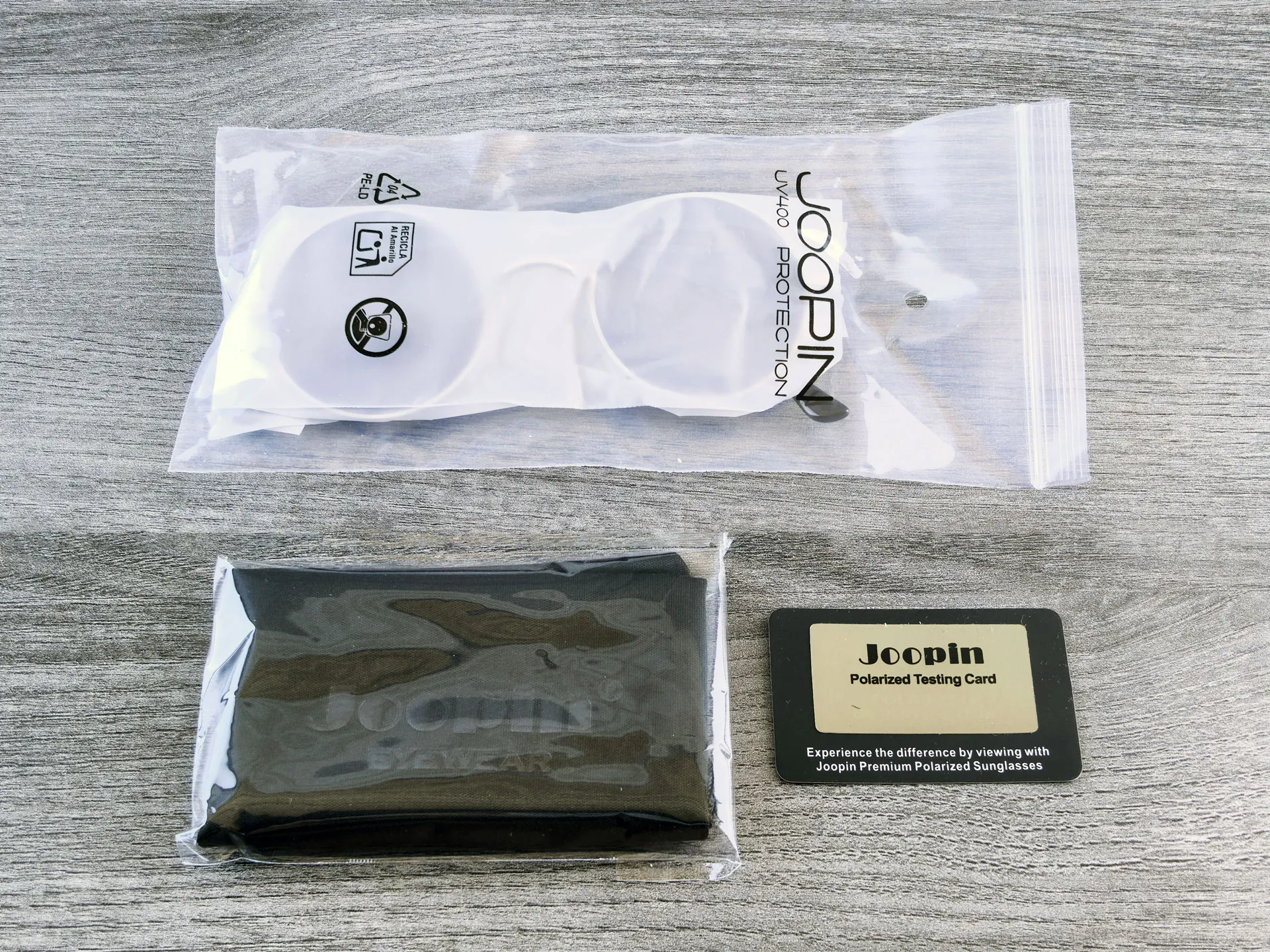 Что китайцы умеют делать на отлично, так это пускать пыль в глаза богатой комплектацией. В коробке, помимо самих двух пар очков, обнаружились салфетка из микрофибры с тиснением бренда и даже тестовая карточка для проверки поляризации. Всё аккуратно упаковано в отдельные полиэтиленовые пакетики.