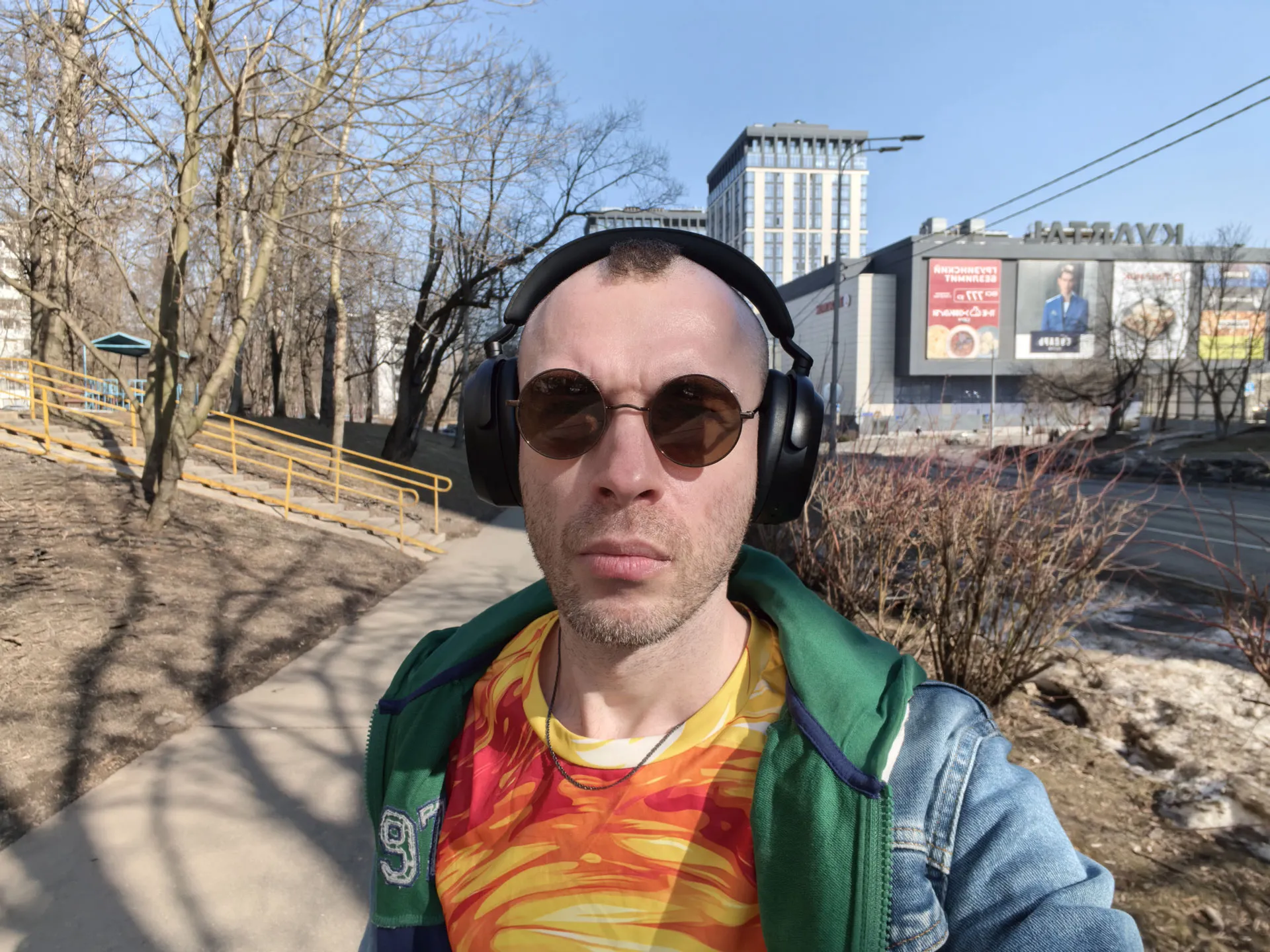 Самый важный тест для бюджетной оптики — это дисторсия (искажения геометрии) и усталость глаз. Я отгулял в Joopin больше часа — глаза в полном порядке, никакого ощущения «песка» или желания немедленно их снять. Дисторсии нет: прямые линии зданий остаются прямыми, даже если смотреть через края линз. Переносица не устаёт, очки не сползают даже при активном движении. Единственный минус — линзы в кармане пылятся моментально, а с внутренней стороны остаются жировые отпечатки от бровей.